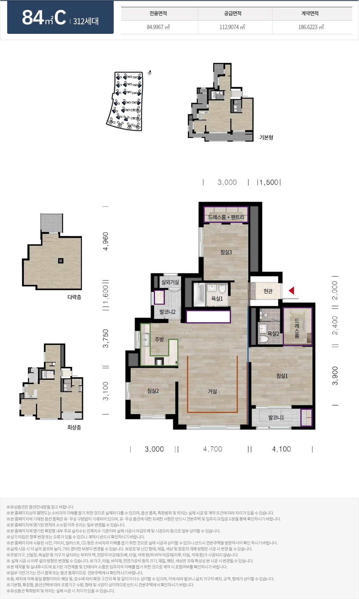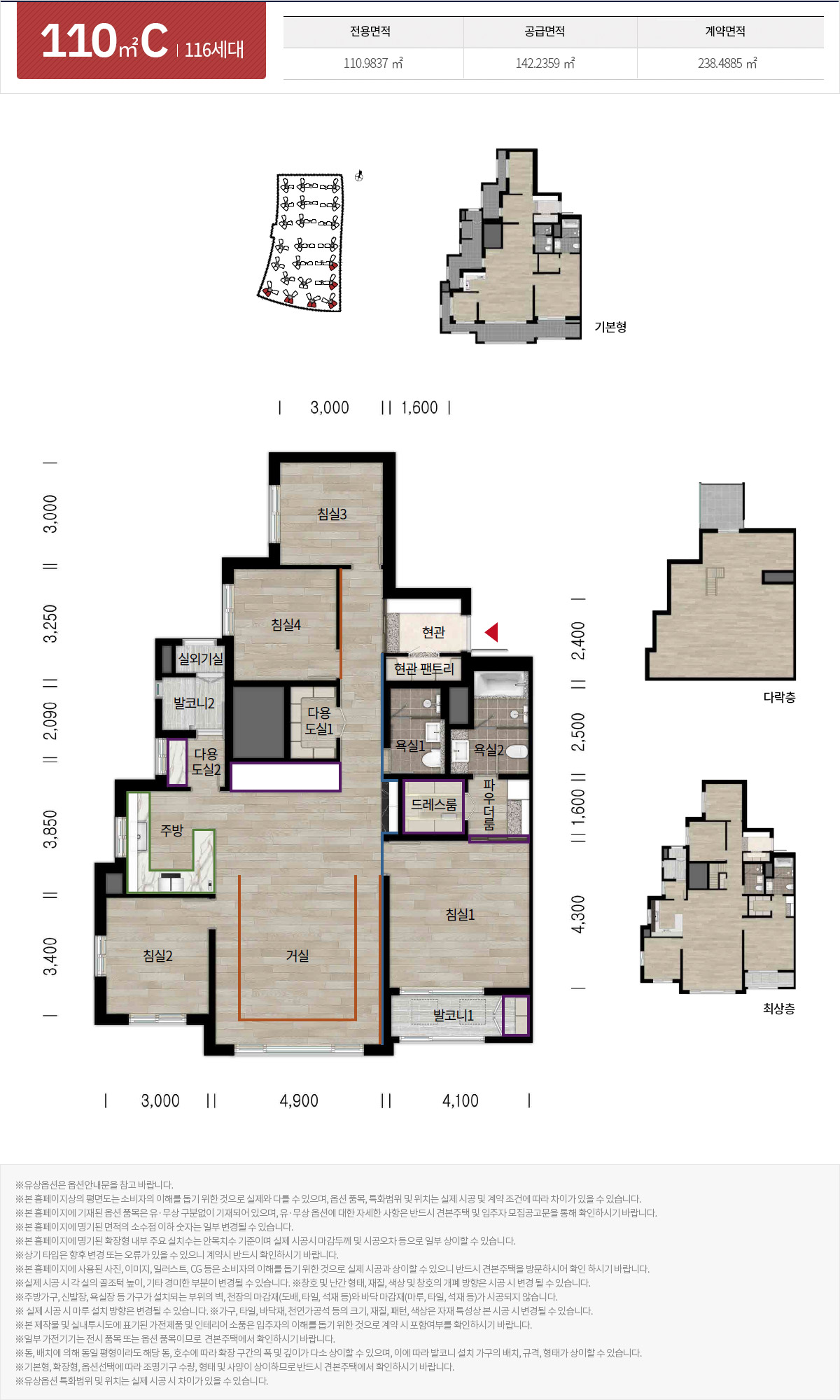 110타입 또한 최상층에는 다락층 복층이 설계되어 있습니다.