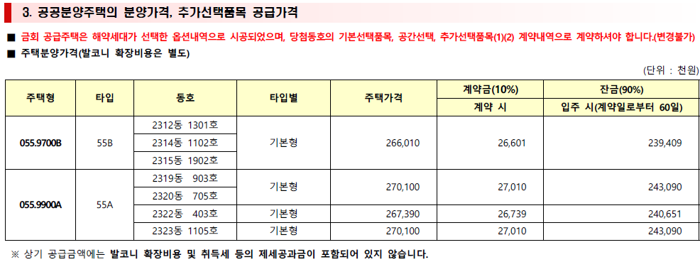 55A타입과 55B타입이 해약세대로 나왔으며, 타입은 기본형에 분양가는 2억6천~7천 내외이다.